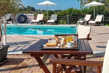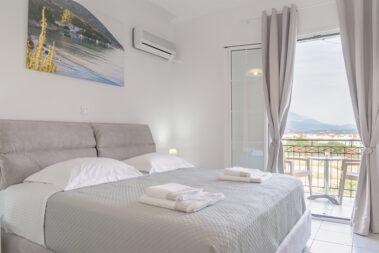 Discover the welcoming spaces and tranquil surroundings of Aspasia Studios through our photo gallery. Take a look at our recently refurbished rooms, sunlit balconies, and the refreshing outdoor pool. Let your imagination wander—your next holiday starts here.